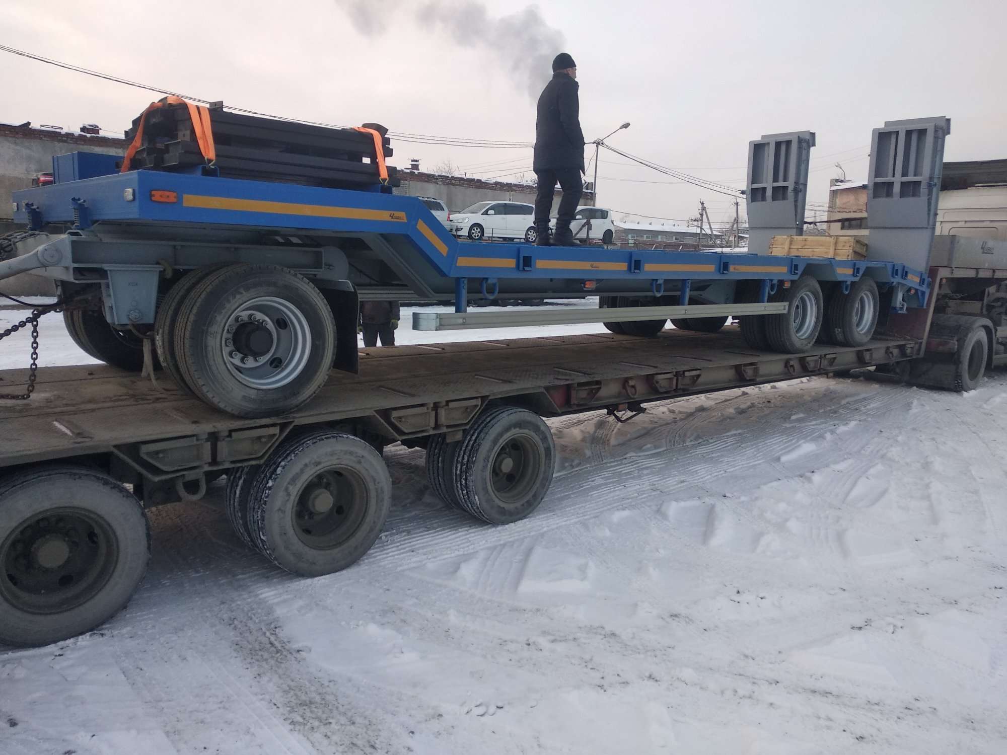 На производственную базу Учреждения доставлен прицеп автомобильный (для перевозки тяжелой строительной техники) в рамках обновления парка специализированной техники.