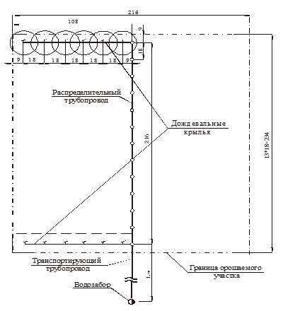 Краткое описаниеКомплект ирригационного оборудования с переносными дождевальными крыльями КИ-5 предназначен для поливов технических, кормовых, овощных и бахчевых культур, картофеля, сенокосов и пастбищ на торфяных, песчаных, супесчаных и среднесуглинистых почвах на площади до 5 га. В состав комплекта входят распределительный трубопровод и два дождевальных крыла, осуществляющих полив попеременно. Дополнительно может поставляться транспортирующий трубопровод o90 мм (длиной до 150 м). Комплект может осуществлять забор воды от гидрантов закрытой оросительной сети или передвижных насосных станций, устанавливаемых у открытого водоисточника. Комплект состоит из следующих основных узлов: транспортирующего и распределительного трубопроводов, двух дождевальных крыльев со среднеструйными аппаратами, соединительной и запорно-регулирующей арматуры, манометров. Транспортирующий трубопровод предназначен для подачи воды от источника — гидранта оросительной сети или насосной станции к распределительному трубопроводу. Он монтируется из полиэтиленовых труб ПНД диаметром 90мм длиной по 6м с помощью быстросборно-разборных соединительных двухсторонних муфт. Общая длина транспортирующего трубопровода до 150 м — в зависимости от расстояния от водоисточника до орошаемого участка. Распределительный трубопровод длиной 216 м собирается из таких же труб, что и транспортирующий, и включает в себя 13 тройников o90×90×75 мм, расположенных через 18 м друг от друга и служащих для присоединения к ним дождевальных крыльев. Комплект включает в себя два дождевальных крыла по 99 м каждое. Крыло собирают из 16 шестиметровых полиэтиленовых труб и 1 трехметровой трубы, на каждом крыле устанавливают 6 дождевальных аппаратов типа «Роса»-1, «Фрегат»-2 или Perazzi с расстоянием между ними 18 м, причем первый аппарат устанавливают на расстоянии 9 м от начала дождевального крыла. Дождевальные аппараты устанавливаются на стояках, ввинчиваемых в специальные патрубки, входящие в состав соединительных муфт. Полив осуществляется дождевальными крыльями попеременно. В комплекте используются полиэтиленовые трубы ПНД типа С для работы при напорах до 60 м. Трубы длиной 6 м с гладкими концами оснащаются металлическими хомутами. При монтаже трубы соединяются между собой двухсторонними муфтами из полиуретана с двумя самоуплотняющимися резиновыми манжетами и фиксируются с помощью специальных скоб. Новизна комплекта подтверждена патентом РФ № 37589. |