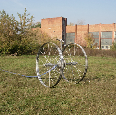 Краткое описаниеПередвижной поливной комплект ППК-25 предназначен для полива пропашных сельскохозяйственных культур и садов по бороздам, а также может применяться для полива сельскохозяйственных культур дождеванием. Работает комплект от гидрантов напорной оросительной сети, выполненной из стационарных или разборных трубопроводов при поливе по бороздам, на спланированных участках, позволяющих проводить полив по бороздам длиной 200 м с рассредоточенной подачей расхода по их длине через каждые 50 м или по ячеистым бороздам длиной 50 м, в т.ч. нарезанным без копирования микрорельефа, а при поливе дождеванием — в соответствии с радиусом полива комплектуемого среднеструйного дождевального аппарата при расстановке по квадрату. Поливной комплект ППК-25 состоит из последовательно соединенных между собой унифицированных двухколесных тележек соединенных между собой водопроводящим плоскосворачиваемым гибким шлангом. Каждая их унифицированных тележек оснащена подводящим шлангом, барабаном и поливным шлейфом для полива по бороздам и комплектуется стояком с дождевальным аппаратом при поливе дождеванием. Узлы подсоединения их шлангов, стояков дождевальных аппаратов поливных шлейфов быстроразъемные, позволяет перемещать тележки с позиции на позицию вдоль борозд без проведения их дополнительных разворотов для подсоединения поливных шлейфов, перемещаемых в осевом направлении поперек поливных борозд. |