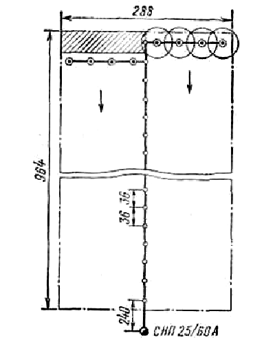Схема полива сада с рассредоточенной подачей расхода по длине поливных борозд с применением поливного комплекта ППК-25: