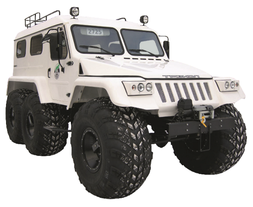 | ТРЭКОЛ-39295 | 6Х6, грузопассажирский, кабина стеклопластиковая, цвет белый, 2 или 4 места, переднемоторная компоновка, ГУР, компрессор для накачки шин, аптечка для ремонта шин, аптечка медицинская, знак аварийной остановки, набор водительского инструмента, грузовая платформа, грузоподъёмность 700 кг |